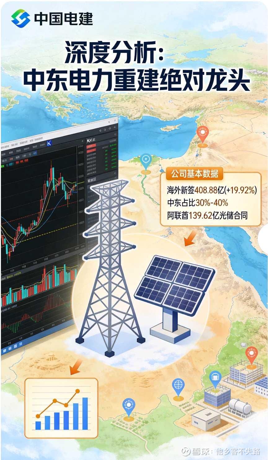 中东电力重建与新能源建设同步提速,电网修复、光储电站需求爆发。中国电建手握阿联酋139.62亿光储EPC大单,叠加沙特光伏项目落地,在中东电力工程市占率领先。