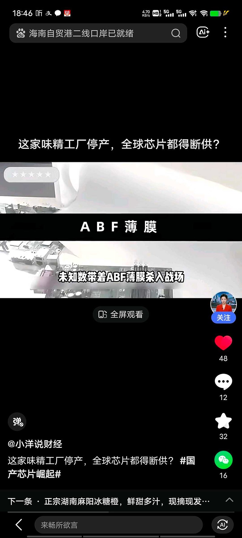 味精的废料生产的ABF材料,阜丰,梅花,有没有。这材料能卡老美脖子,