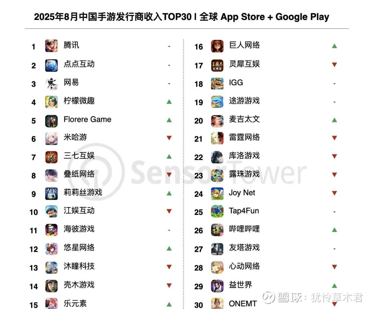 8月的手游收入榜出炉: