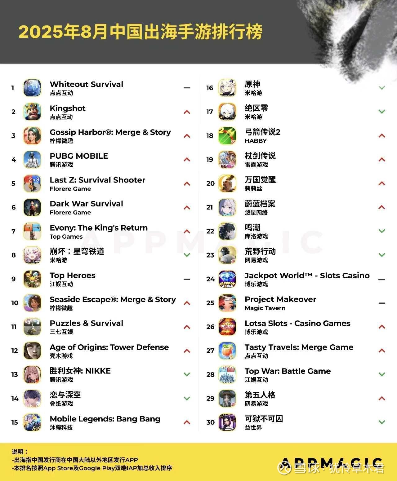 再看看8月手游出海收入榜: