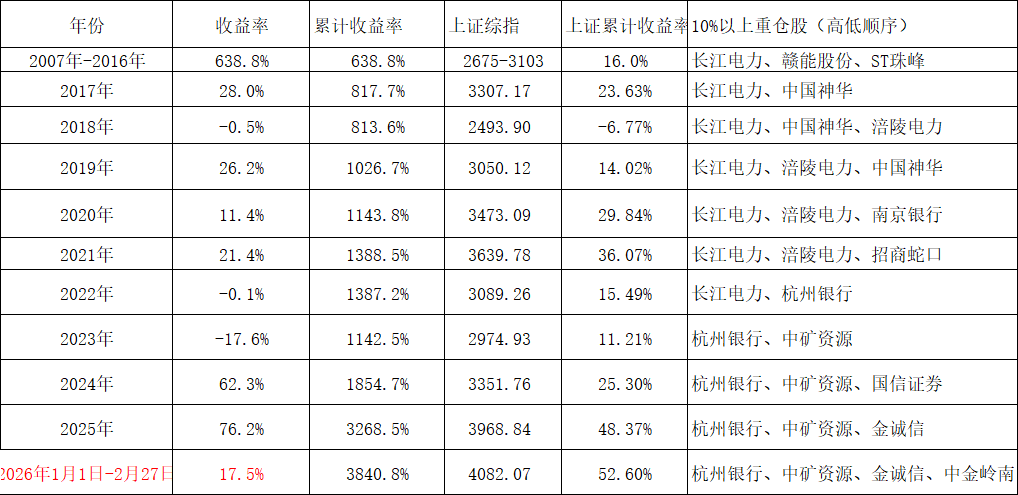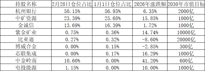 时间太快,26年过去2个月了,股市在4000点左右振荡,金银铜铝锂价格也在高位盘整,26年Q1有色上市公司确定性大幅增长了,Q1重点研究了银和铝的产业链和商业逻辑,增持了中金岭南和电投能源,通过中矿资源、金诚信、中金岭南、电投能源和紫金矿业5只股票完善了有色金银铜铝锂等5种金属布局,符合绩优、成长和低估均同时满足的股票买入标准。今年前2个月截止目前组合获得17.51%的正收益,基本满意。