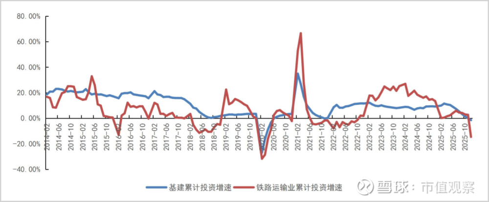 ▲基建和铁路运输业累计投资增速,来源:山西证券