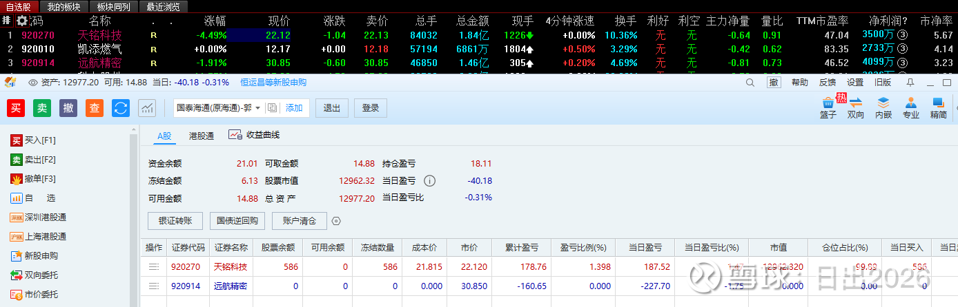 。虽然还是赔钱,但是根据今天的大盘走势,感觉还是比前几天的操作要好一些。