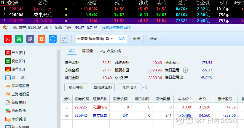 利通科技开盘卖了,微有盈利。恒立钻具会开启一波的。