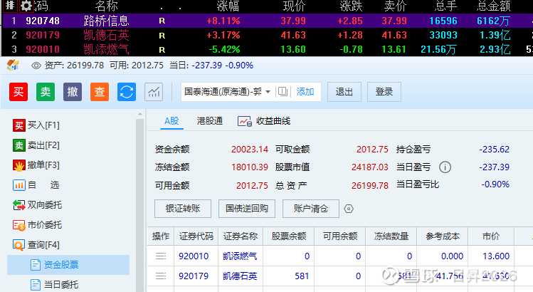 凯添燃气现在和中东的消息密切相关,不好把握。一早跌了7个点,按交易纪律午前出手了。