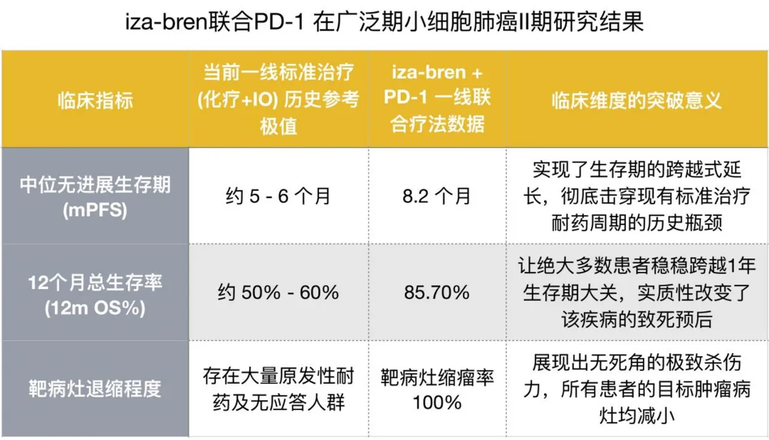 此次发布的数据重要性水平极高,iza-bren不仅在极难治愈的小细胞肺癌领域撕开了一道巨大的口子,更在底层商业逻辑上完成了质的飞跃。