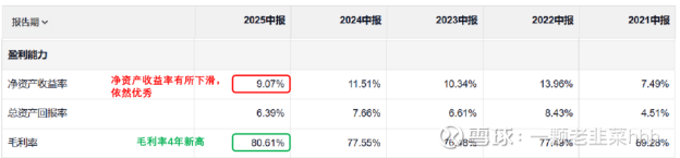 (3)盈利能力:即便在2025年上半年布伦特均价约69美元的油价环境下,公司仍实现净利润695亿元,毛利率创下80.61%的四年新高,年化ROE依然保持优秀水平,凸显其强大的盈利韧性。