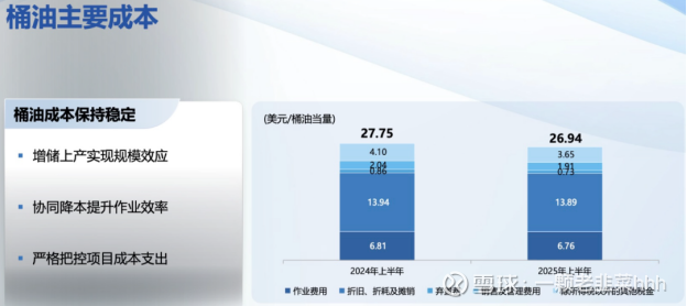 (2)桶油成本:2025年上半年,公司桶油主要成本降至26.94美元/桶,同比下降2.9%,继续巩固全球成本优势地位。其低成本源于海上规模效益、技术降本如岸电工程、工程标准化、“新优快”钻井和卓越的管理。
