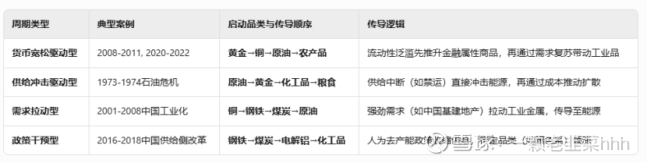 历史表明,大通胀的启动与传导遵循相对稳定的路径且每次催化的路径均存在差异,不同驱动因素主导的通胀周期,其启动品类和传导顺序存在显著差异,如下图所示。