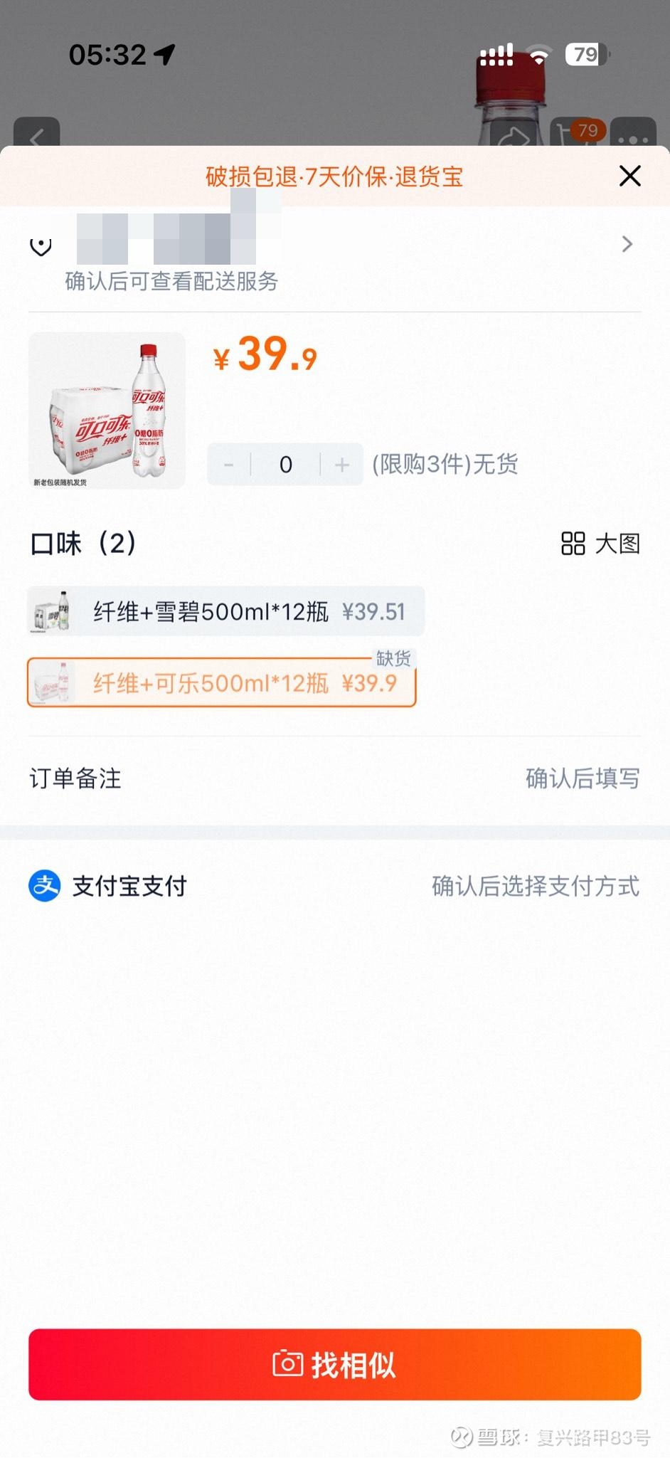 500ml的纤维可乐和450ml的苏打水依旧处于断货状态,纤维可乐离我最近的应该是天津厂和河北廊坊的三河厂但却从数千公里的长沙厂给我配送,网购这么多次还是头一次,不过好消息是天津厂给我发了苏打水,$中国食品(00506)$ $可口可乐(KO)$ $消费50ETF(SH515650)$