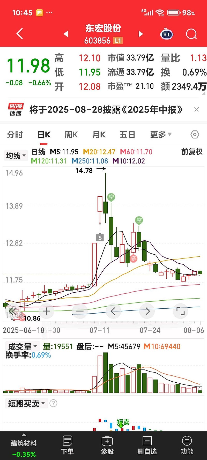 $东宏股份(SH603856)$ 在11.70元突然拉2个涨停,但找不到合适的理由。然后,从最高点13.70元左右回调到现在才三周的时间。成交量也逐渐萎缩。给人的感觉就是前二周派发已经完成,股价将沉寂相当一段时间。在7月22日雅鲁藏布江下游水电工程项目公布后的日子,也没有表现,反而下跌(如图)。本人认为现在还不是买入的时候,继续等待将是最好的选择。@彩霞满天789 。