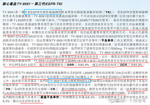 $同源康医药-B(02410)$从临床数据看, TY-9591在单药治疗非小细胞肺癌(NSCLC)的亚群中,如脑转移、L858R突变,疗效优于奥希替尼。不过,奥希替尼在无脑转移患者中仍为一线标准治疗。