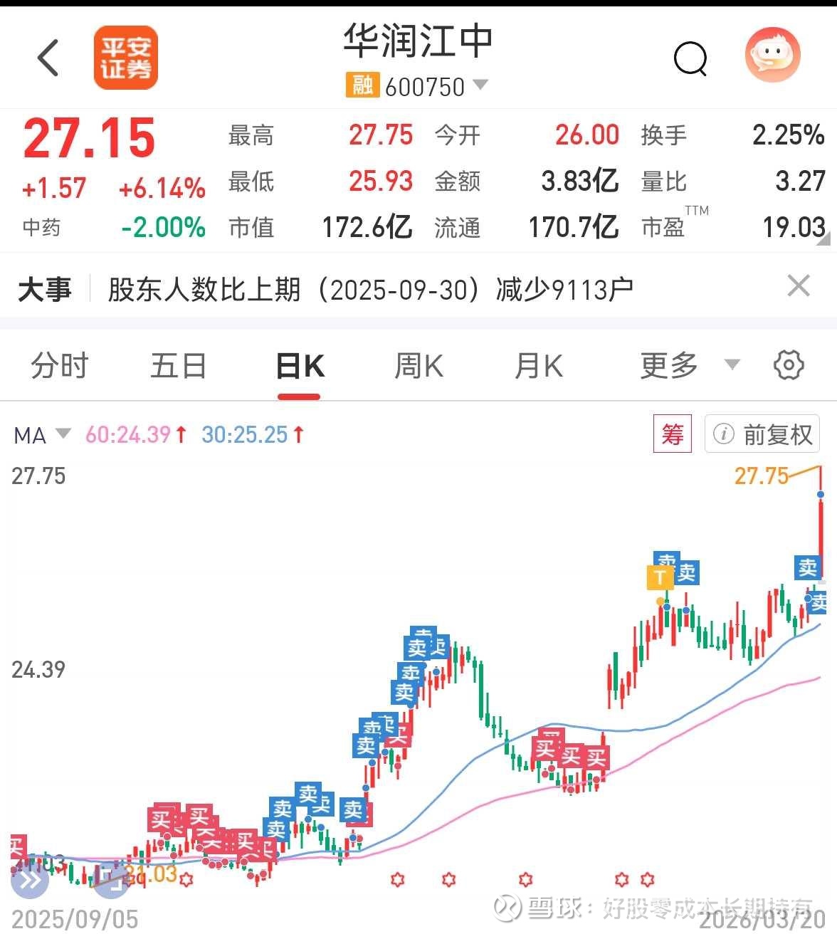想要在一只股票上赚到钱,首要前提就是在低估时买入。我布局江中药业,正是在它估值处于历史低位、业绩扎实、现金流稳定、股息可观的时候。此时股价被市场低估,安全边际很高,下跌空间有限,向上修复的概率很大。如果在高估时追高,即便公司再好,也很难赚到钱,甚至长期被套。负成本的起点,正是低估买入,没有这个前提,再高明的操作也很难盈利。