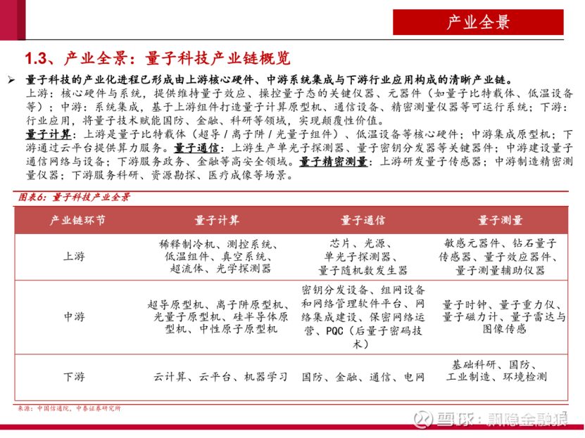 本部分内容将从产业链视角出发,结合政策导向、技术突破与市场应用,系统解析量子科技行业的上游核心器件、中游系统设备、下游应用场景及关键环节,为二级市场投资者提供决策参考。