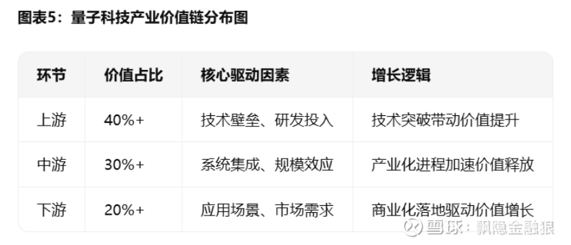 量子科技的产业价值链涵盖上游核心器件、中游系统设备、下游应用场景三大环节,价值传递呈现“上游技术驱动、中游系统整合、下游应用落地”的特征。本部分将从价值链视角出发,解析量子科技行业的价值分布与增长逻辑。