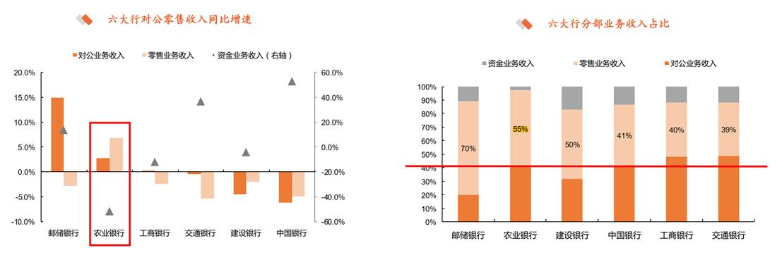 【营收结构:农行对公零售逆势上行,邮储对公贡献显著提升】