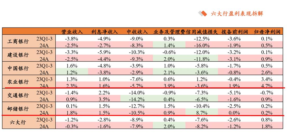 【24年国有大行的比较】(注:整体上看,还是邮储银行最具差异化特征。)