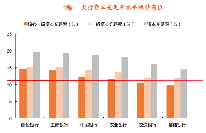 2024年大行拨备覆盖率和拨贷比整体居于高位,其中农行拨备覆盖率和拨贷比均位于同业首位,拨备水平夯实无虞,从同比变化看,大行拨备覆盖率部分下行,中行、交行维持同比上行。(注:拨备覆盖率率,农行=299,邮储=286,差别不大。)Ø 未来随着财政部对建行、中行、交行、邮储定向增发完毕,大行整体的资本充足水平。(注:农行的核心一级资本就是个平均水平,未来能支持多久的规模高增长?)