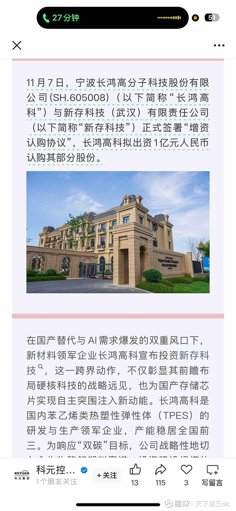 $长鸿高科(SH605008)$