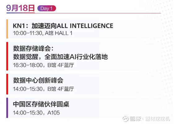 大会期间,数据存储领域将迎来密集议程:9 月 18 日 16:30-18:00,B 馆 4F 蓝厅举办的 "数据觉醒,全面加速 AI 行业化落地" 主题峰会,将深度解析存储技术如何支撑 AI 规模化应用;同期还有中国区存储伙伴圆桌、数据中心创新峰会等多场活动,聚焦产业链协同与技术突破。