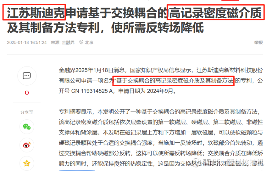 公司已布局关键专利《基于交换耦合的高记录密度磁介质及其制备方法》(CN202411372878.8),通过创新磁介质层叠结构(第一软磁层 + 硬磁层 + 第二软磁层),实现降低反转场与提升热稳定性的双重突破,完美适配高温环境下的企业级存储需求。