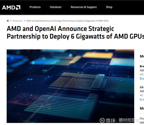 当地时间 10 月 6 日,AMD 与 OpenAI 官宣 6 吉瓦算力合作协议,将为 OpenAI 下一代 AI 基础设施供应多代 AMD Instinct GPU,首批 1 吉瓦 MI450 GPU 计划 2026 年下半年启动部署;同时 AMD 向 OpenAI 发行最高 1.6 亿股普通股认股权证,此次合作预计为 AMD 带来数百亿美元收入。消息发布后,AMD 股价最高暴涨近 38%。