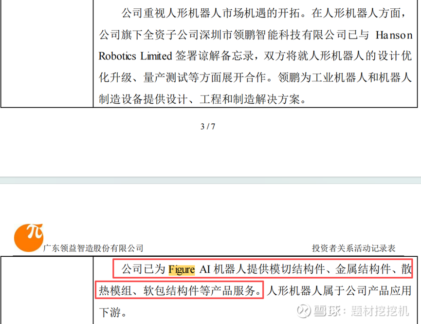 领益智造积极开拓人形机器人市场,已成为 Figure AI 机器人的重要供应商,合作内容包括: