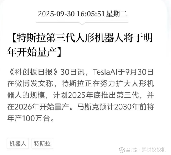 10 月 7 日,特斯拉 Optimus 机器人在洛杉矶《Tron:ARES》电影首映礼上公开展示,流畅完成太极风格动作;10 月 4 日,马斯克发布 Optimus 学习功夫的视频,机器人可精准完成格挡、反击动作,被推搡后还能通过调整重心恢复平衡,马斯克明确回应网友质疑 “由 AI 驱动,非遥控操作”,标志着 Optimus 从预设程序向动态交互能力实现关键突破。此外,Tesla Al于9月30日在发文称,特斯拉正在努力扩大人形机器人的规模,计划2025年底推出第三代,并在2026年开始量产。马斯克预计2030年前将年产100万台。