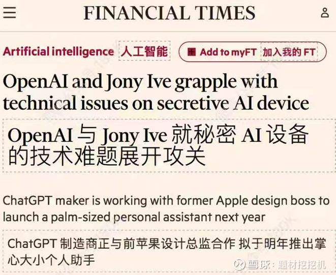 OpenAI 正与前苹果设计总监 Jony Ive 合作研发全新消费电子产品,计划明年推出掌心大小的 AI 个人助手,双方已孵化出 15-20 个产品创意,设备或采用无屏设计,依赖摄像头与麦克风实现交互,目标 2026 年底上市(目前研发阶段面临技术瓶颈)。早在 2025 年 5 月,OpenAI 就以约 64 亿美元收购 Jony Ive 的 AI 设备初创公司;在旧金山 OpenAI 开发者大会上,双方进一步确认正研发多款硬件产品,但具体使用场景与规格仍处于保密阶段。