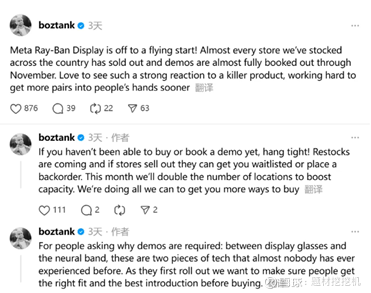 10 月 5 日,Meta 首席技术官表示,Meta Ray-Ban Display 智能眼镜线下零售店几乎全部售罄,11 月前的试戴预约也已排满,公司正加速补货,计划本月将销售点数量翻倍,同时评估开通在线订购渠道。IDC 数据显示,2025 年智能眼镜出货量将增长 247.5%,2029 年全球硬件出货量有望达 4310 万台(复合年增长率 31.8%),其中 Meta 在该市场占据 60.6% 的份额。此外,苹果已暂停原定于 2027 年推出的 “Vision Air”(Vision Pro 改款)研发,转而优先推进可与 Meta 竞争的 AI 智能眼镜项目。