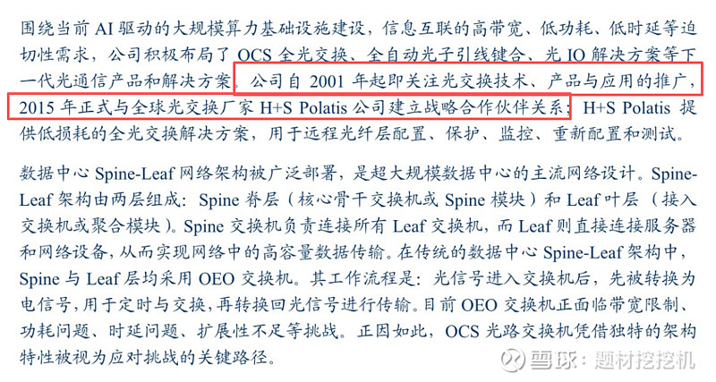 凌云光是国内最早关注光交换技术的企业之一,自 2001 年起便开始推广光交换技术的产品与应用,并在 2015 年与全球光交换厂家 H+S Polatis 建立战略合作伙伴关系。Polatis 是谷歌 OCS 全光交换产品的重要供应商,其低损耗全光交换解决方案被谷歌用于 TPU 集群的光纤层配置、监控与重新配置等场景,而凌云光作为 Polatis 相关 OCS 产品在国内的唯一代理商,独家代理其采用压电陶瓷技术路线的 OCS 产品,该产品能实现任意端口光路切换,与谷歌 TPUv4 集群的 OCS 互联技术要求高度适配,成为谷歌 OCS 生态在国内的重要承接方。