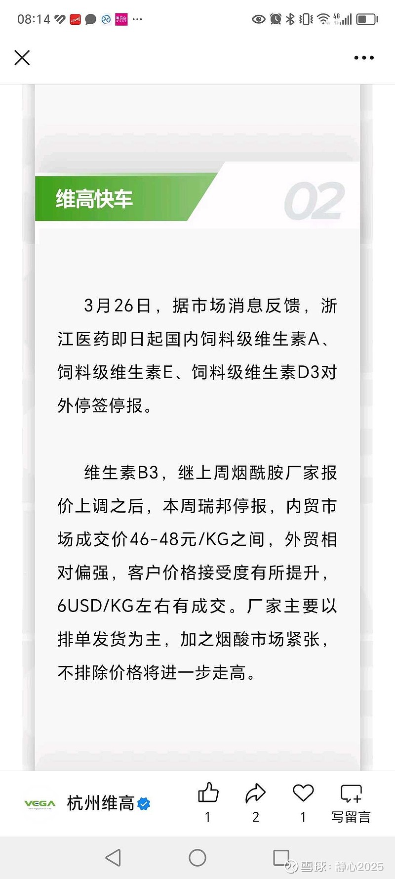 维生素d3都停报了。vd3上涨应该马上来临。
