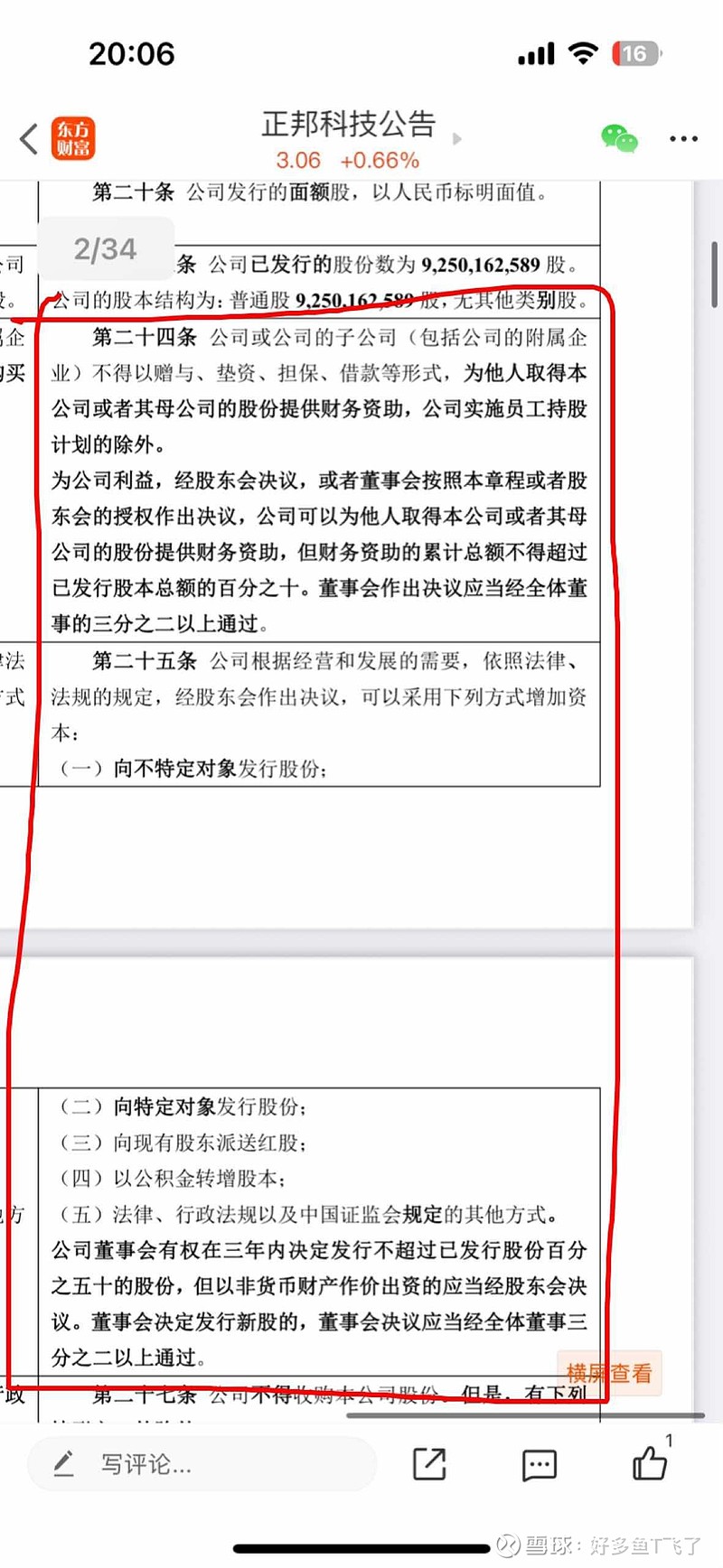 $正邦科技(SZ002157)$都去看财报干嘛财报都预发过了。新修订的公司章程才是主要关键点,新章程直接明牌了,必然会注资!新章程(第24、25条)(并且修改章程的人是高层,而正邦现在的实际控制人和高层董事会又是谁?[送花][送花][送花]自己意会)说重点:1.双胞胎借壳上市可以享受财务资助。2.增发股份不会超过总股份的50%