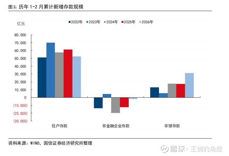 总体而言,2026年1-2月实体部门资金面呈现表面活化、实质梗阻的特征,居民和企业间的循环效率依然没有明显改善。居民定期存款明显少增,说明居民收到企业支付的薪酬、分红后,没有选择再次沉淀为储蓄,而是用于偿还贷款、消费或投资,看似活跃,但实则循环受阻。一是居民新增贷款首次出现负增长,虽然有互联网贷款加强治理的一次性冲击,但冲击规模有限,背后核心因素还是居民信心不足,融资需求疲软;二是,居民存款少增并未回流企业,因为企业存款同比多增资金更多来自结汇,流出的资金依然在金融体系空转,这证明了企业和居民之间的循环依然不畅。