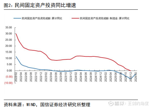 我们判断居民和企业循环效率没有明显改善核心症结在于居民收入增速仍处在低位且没有看到明确的向上的拐点。2025年我国城镇居民人均可支配收入同比增长4.2%,人均可支配收入中位数同比增长3.7%,较2024年增速分别回落0.2个和0.9个百分点。同时,中位数增速低于均值增速,且中位数增速回落幅度较大,这也意味着收入分配结构可能存在一定的“K型”分化,即中低收入群体的收入修复慢于高收入群体。由于中低收入群体的边际消费倾向更高,中位数增速的下滑对全社会消费需求的抑制作用更明显。2026年前2月民间固定资产投资增速累计同比下降2.6%,这也印证了实体部门信心依然不强,未来仍需要待政策进一步发力改善居民收入预期,从而激活民间资本的投资信心,实现从资金总量充裕向资金循环高效的跨越。
