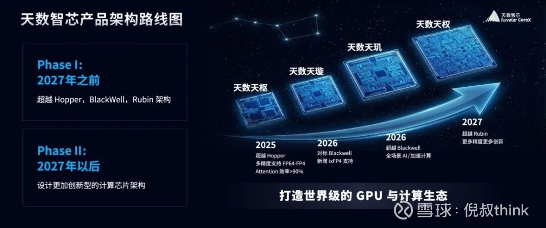 说实话,如果只是"又一家国产芯片公司发新品",我不会特别关注。但这次有点不一样——他们直接把"超越英伟达"的时间点发布出来了:2025年超越英伟达Hopper架构(实测已超越20%),2026年对标Blackwell架构,2027年超越目前英伟达最先进的Rubin架构。国产芯片公司公开叫板英伟达,这种事你听得多了。但把具体年份、实测性能写清楚的,不多见。