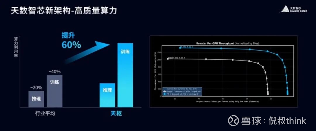 过去几年,整个行业都在追求"更大的TFLOPS"。但大家逐渐发现,理论峰值和实际效果之间有巨大的鸿沟。买回来一堆算力,实际能用的可能不到一半。剩下的要么在等数据,要么在等调度,要么被各种系统开销吃掉了。天数智芯的策略是:与其卷参数,不如卷效率。把同样的硬件条件下,能用起来的算力比例提上去。