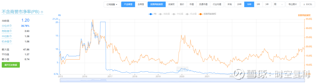 目前PB1.2倍,位于历史37%的位置,合理偏低。