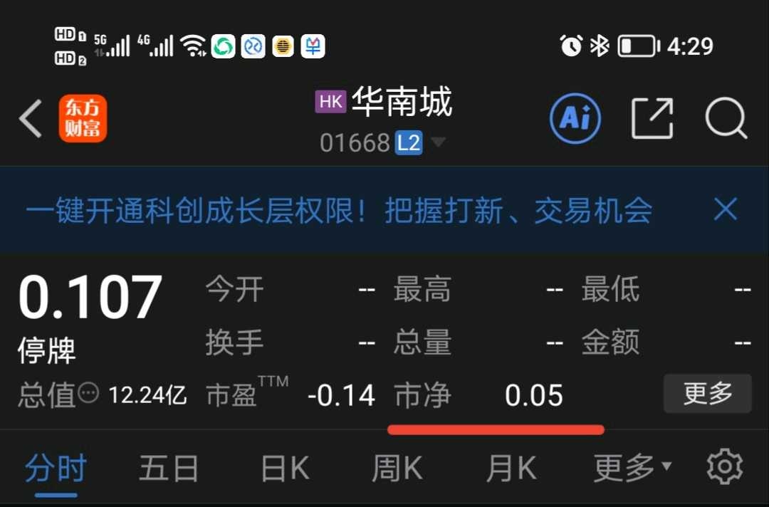 所谓的净资产,不仅仅是一个数字,还对应着背后真实的资产,还有资产的价值。很多企业市净率非常低,低到0.1或者0.2,但你看它的净资产是什么?如果是一堆高价买的机器、卖不出去的存货,计算净资产的时候按当时的购买价格入账的,清盘价值基本当废品了,市净率再低也没用。我再举一个例子,比如港股上市的华南城,市净率0.05倍,够低了吧,最后退市价值归零。它的净资产大部分是一些价值很低的土地、空置的物流园和仓储等,卖也难卖,开发也没有价值,处理掉甚至不够还债。