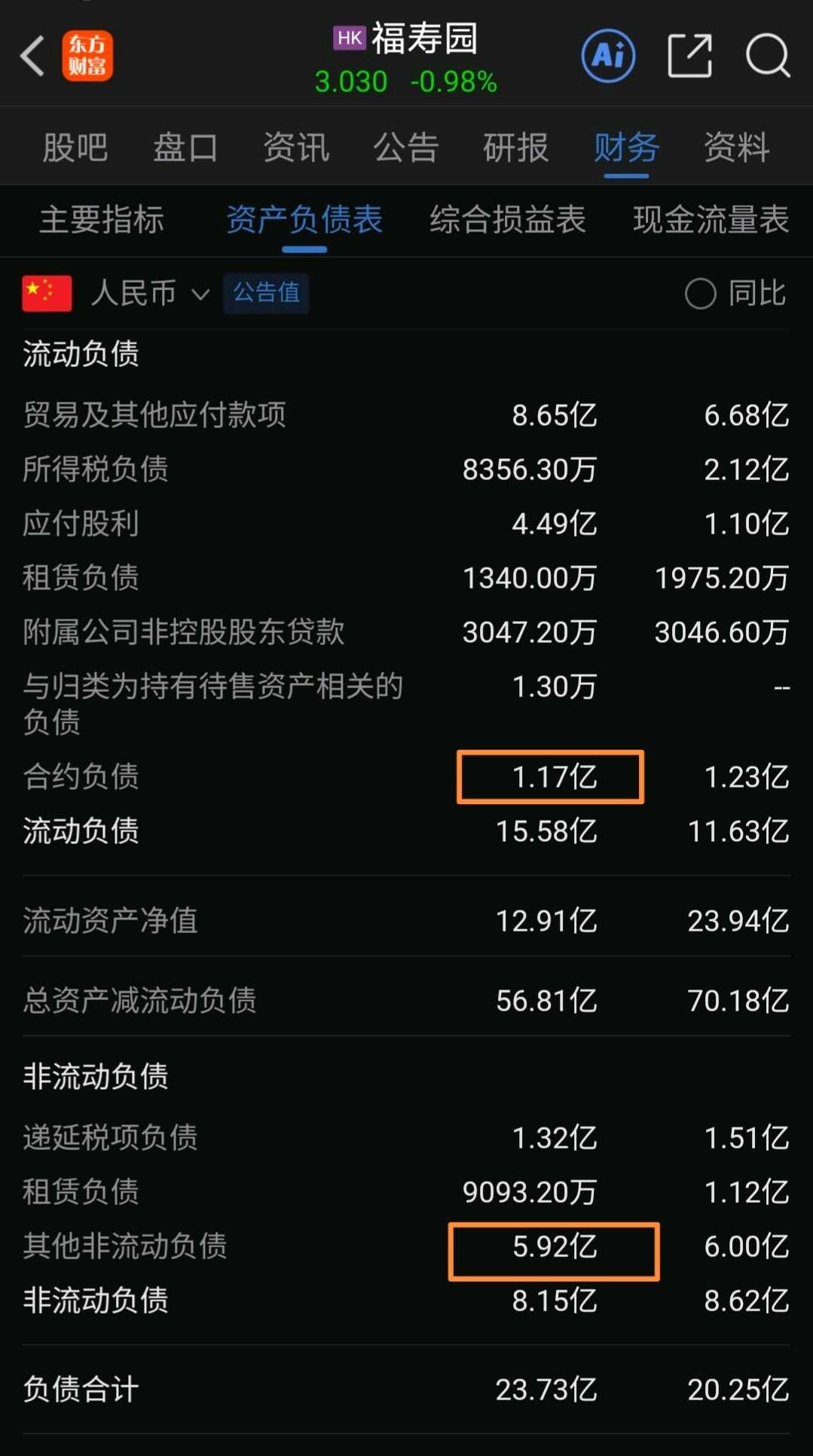 福寿园的总资产72亿,其中类现金资产,包括银行结余现金16.23亿+定期存款2.11+1.71,现金理财3.12亿,应收账款1.44亿,还有受限押金1.09亿,这些加起来已经有25.7亿了。而福寿园没有有息负债,反而有6亿多的合约负债,包括墓园服务的合约负债和生前契约,这些其实是以后逐年确认成为福寿园的利润的。所以,福寿园现在有的现金类资产加上提前收到的合约现金已经超过三十亿。