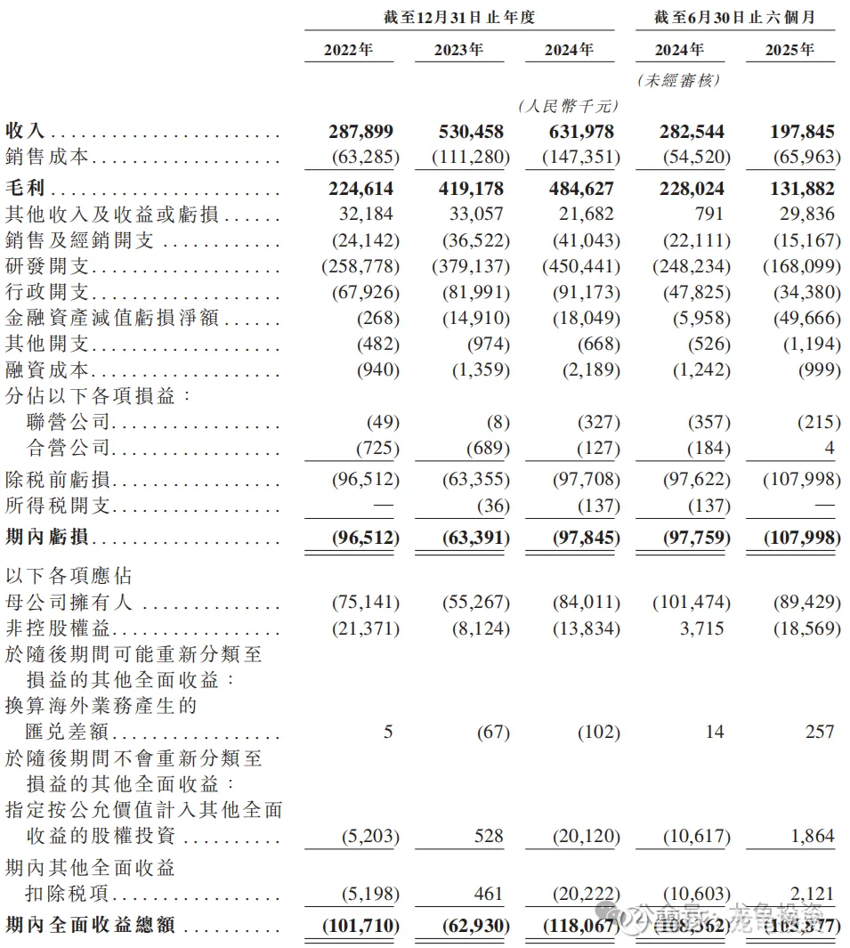 22-24年全面净亏损分别为:-1.02亿元、-6293万元、-1.18亿元,25年H1净亏损-1.06亿元,24年同期净亏损-1.08亿元。