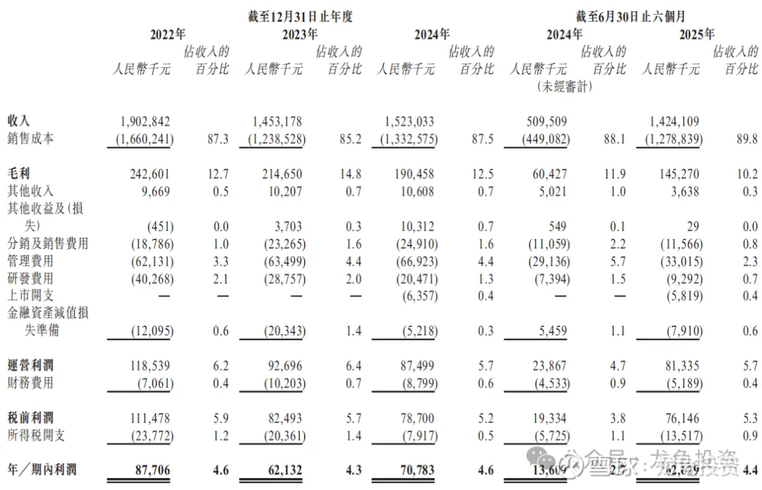 22-24年毛利分别为:2.25亿元、4.19亿元、4.85亿元,25年H1毛利1.32亿元,较24年同期2.28亿元下滑42.11%;