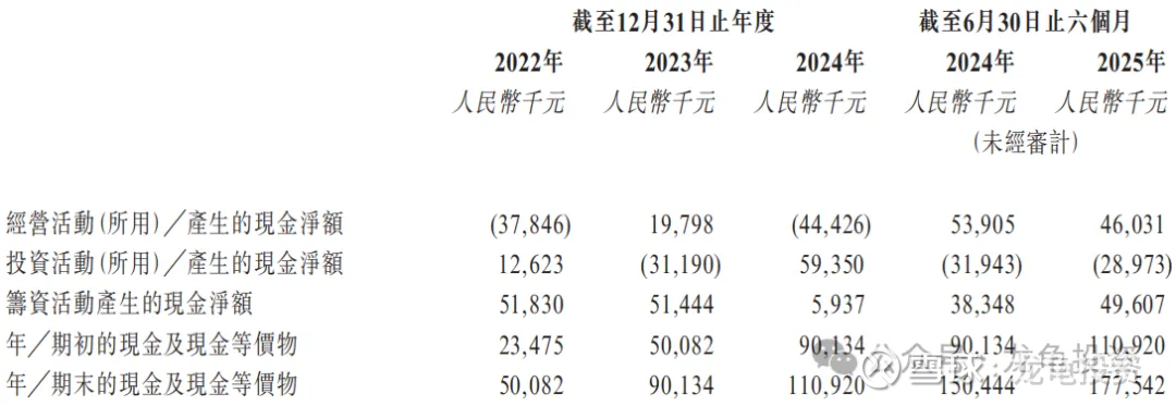 迅策经营现金流持续流出,全靠22、23年融资的10个亿在支撑,基本每年平均损耗1.5-2.0亿左右,25年H1现金及现金等价物2.22亿元。