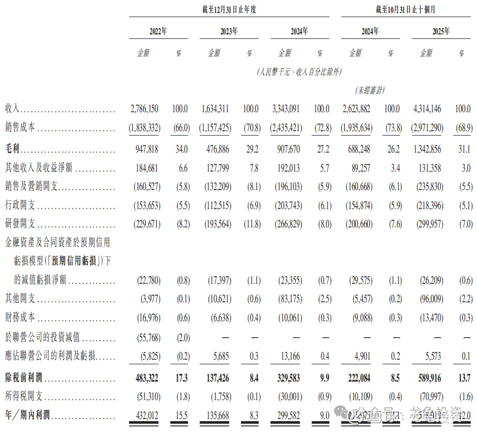 22年毛利9.48亿,23年毛利4.77亿,24年毛利9.08亿,25年Q3毛利13.43亿,较上年同期6.88亿,同比增长95.20%;