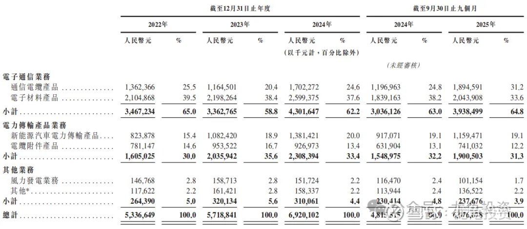 按2024年收入计,公司在全球覆盖高速铜缆通信电缆市场中排名第三、中国第一,在全球高速铜缆整体市场中位列第二,并在全球及中国热缩材料市场均排名第一。公司拥有强大的研发能力(截至2025年9月持有547项发明专利)、遍布中国及东南亚的制造基地,以及多元化的全球客户网络,财务表现持续稳健增长。