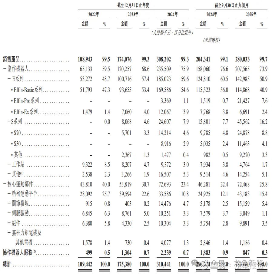 主要营收来源于销售协作机器人、核心运动部件和协作机器人服务,具体明细见下图,就不一一列举了。
