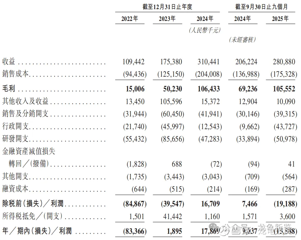 22年毛利1500.6万,23年毛利5023万,24年毛利1.06亿,25年Q3毛利1.06亿,较上年同期0.69亿,同比增加53.60%;