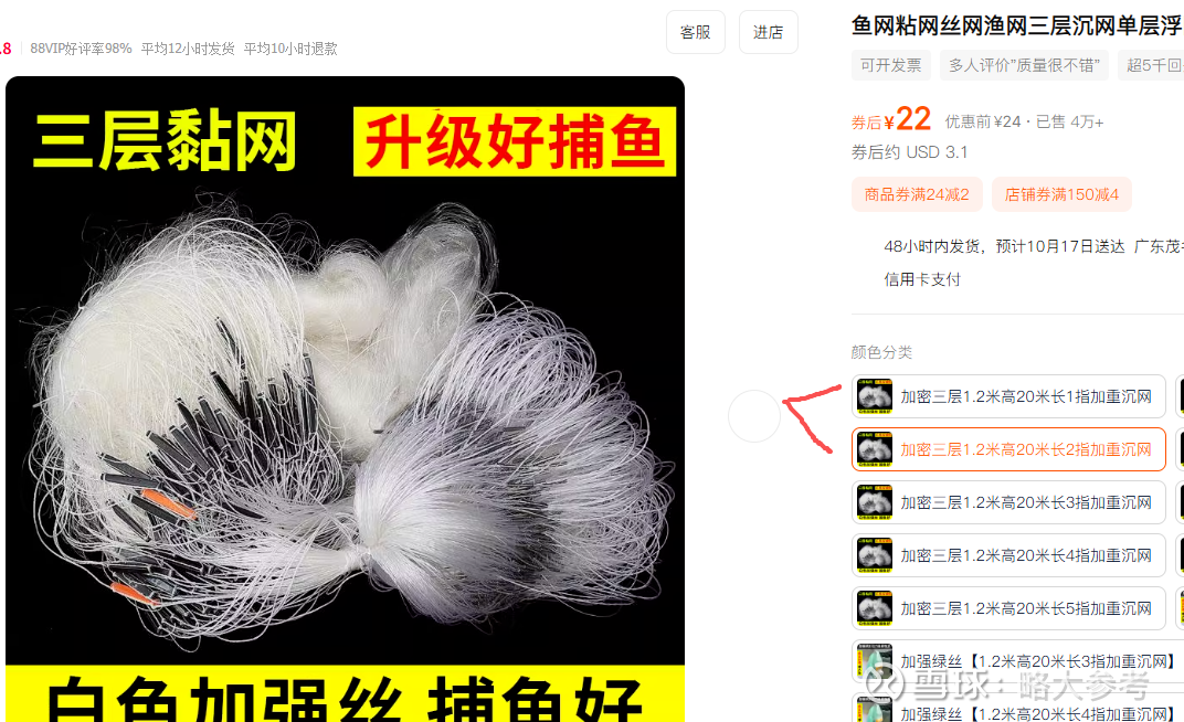 图注:这两张渔网只有粗细的区别,但却差了六块钱。