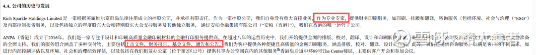 安柏财经的主营业务是“帮别人上市”。比如提供上市文件、财务报告、基金文件、通告和公告等相关服务,在撰写公告上是实打实的专家。