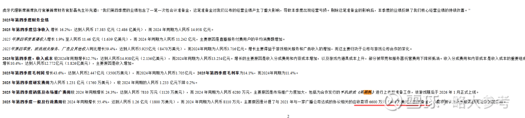 但这样带来的潜在好处是:接下来的2026年Q1、Q2,随着《鹅鸭杀》的全面公测,和商业化能力的不断提升,它必然会给虎牙带来大量的收入增长。